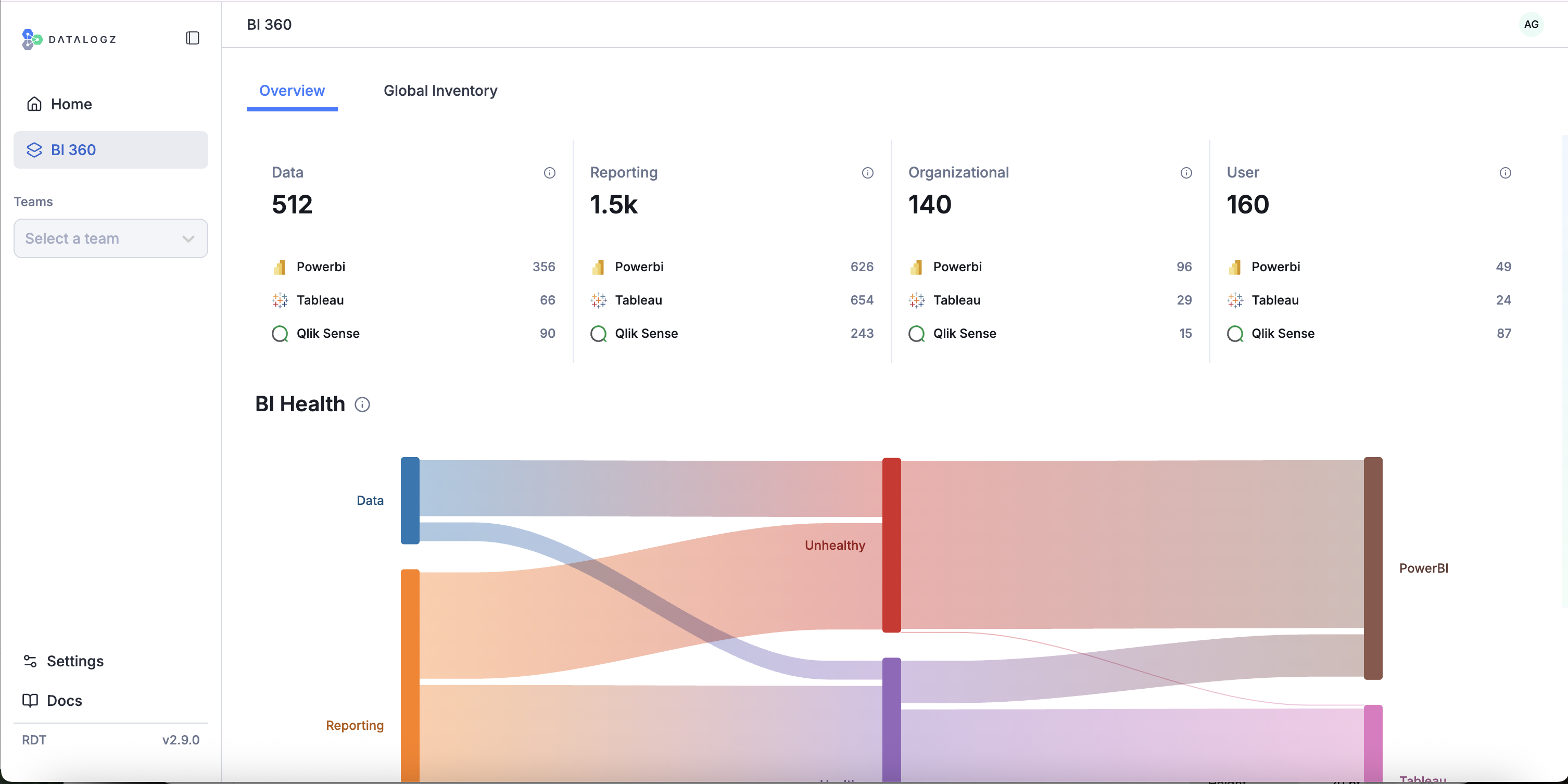 * A [Global Inventory](https://docs.datalogz.io/guides/bi-360/global-inventory) with all BI assets cross BI tools and their health.